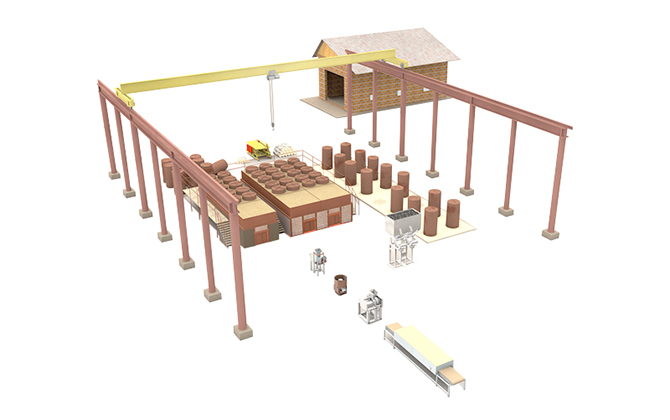 После детального изучения приступаем к моделированию объектов и созданию сцены. Стараемся сделать модели максимально приближённые к оригиналам. Иллюстрация должна быть не только хорошо нарисована, но еще и нести информационный характер. Заказчик планирует заниматься продажей не только древесного угля, для которого мы, кстати, разработали упаковку, а перед этим фирменный стиль компании, но и оборудованием для производства этого угля.